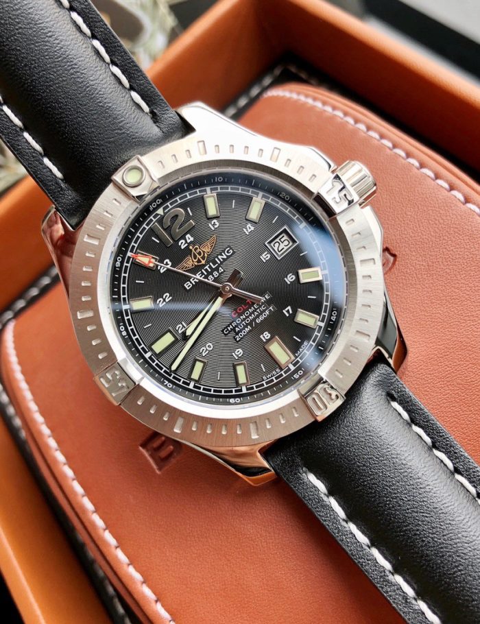 The Breitling Superocean Automatic 44 is a blend of style and functionality. Crafted with a robust stainless steel case and bracelet, its luminous markers ensure visibility in low-light conditions, making it ideal for divers and adventurers. This watch combines durability with a sleek, sophisticated design, perfect for both everyday wear and extreme environments.