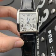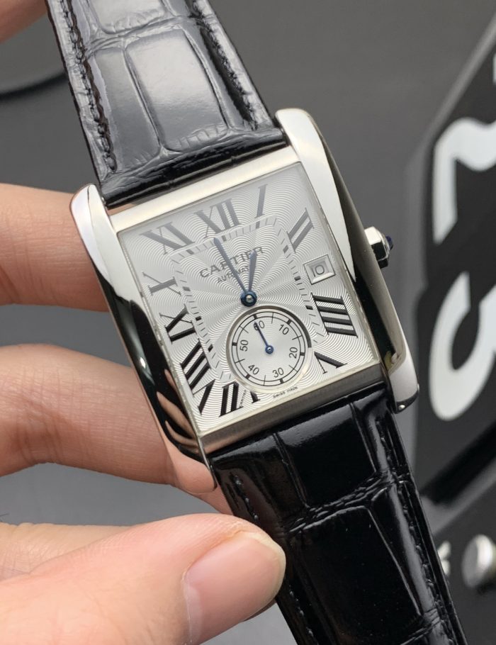 The Cartier Tank Solo exudes timeless elegance with its sleek stainless steel rectangular case and signature Roman numeral dial. Paired with a luxurious black alligator leather strap, this watch is perfect for both formal occasions and everyday sophistication. Powered by an automatic movement, it combines style with reliable timekeeping.