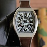 The Franck Muller Vanguard Camo Watch features a bold, angular design with a striking camouflage pattern on the dial. Encased in stainless steel, this timepiece boasts an avant-garde aesthetic, complemented by a durable black leather strap. Perfect for those who appreciate a mix of luxury and adventurous style, this watch blends functionality with a unique visual appeal, making it ideal for both casual and formal occasions.
