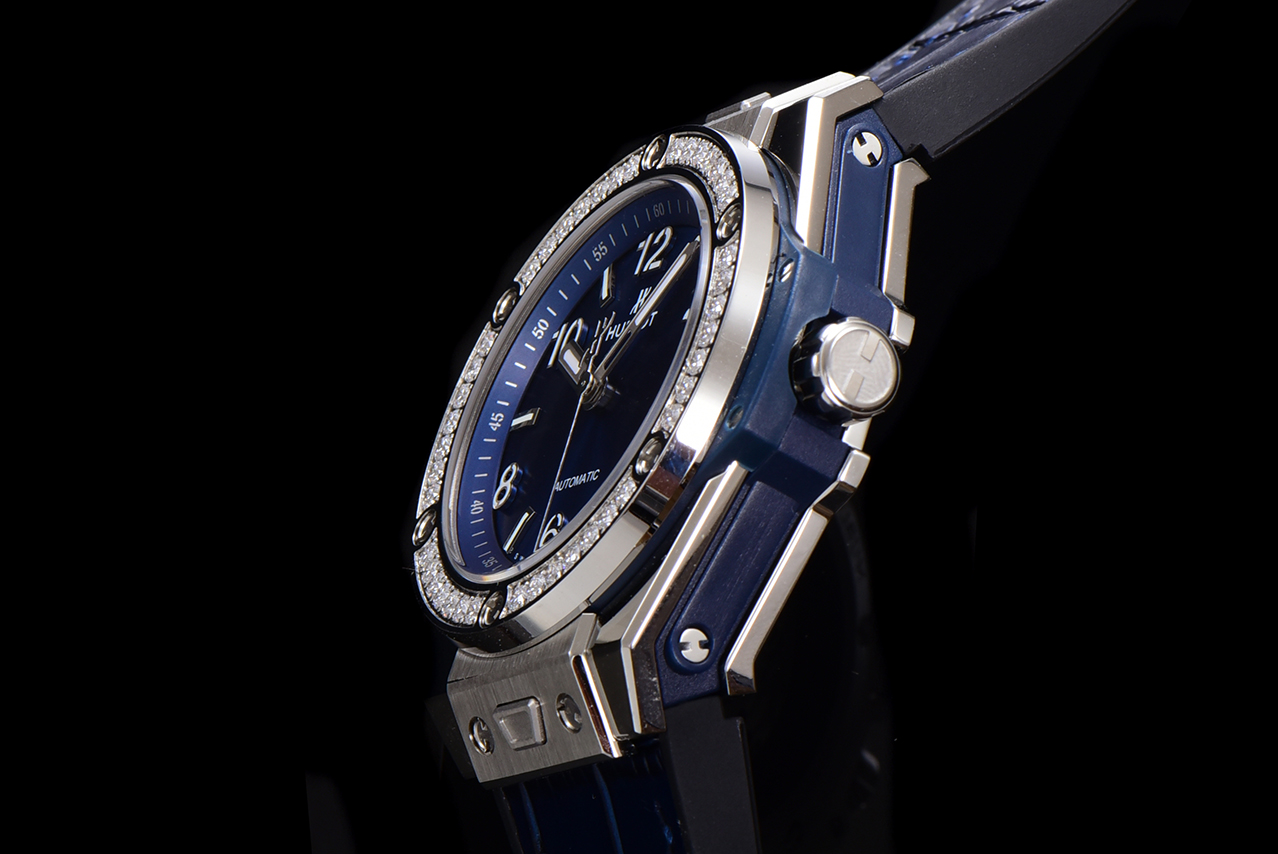 The Hublot Classic Fusion Automatic exudes elegance with its striking blue dial and diamond-studded bezel. Crafted with a polished stainless steel case and complemented by a luxurious blue leather strap, this timepiece blends modern sophistication with timeless style. Perfect for both formal occasions and refined everyday wear, this watch is a statement of precision and luxury.