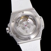 The Hublot Classic Fusion Diamond Watch elegantly combines luxury and style. Featuring a sleek white dial, its bezel is adorned with sparkling diamonds, exuding sophistication. The durable stainless steel case and comfortable white rubber strap make it both resilient and stylish. Ideal for formal occasions or adding glamour to everyday wear, this timepiece ensures you stay punctual and fashionable.
