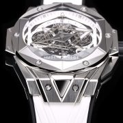 Discover sophistication with the Hublot Luxury Skeleton Dial Watch, featuring a bold geometric design and high-grade titanium case. The intricate skeleton dial showcases precision engineering, perfect for watch enthusiasts. Ideal for both formal occasions and everyday wear, this watch combines elegance and modern flair, making a statement in style and functionality.