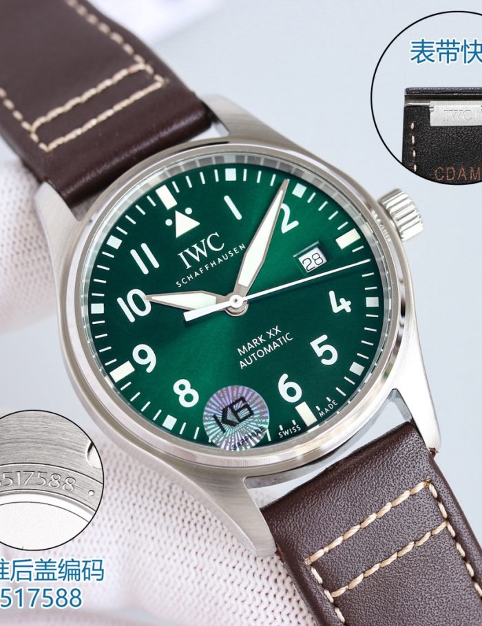 The IWC Mark XX Automatic Watch combines timeless elegance with modern functionality. Featuring a striking green dial encased in stainless steel, this watch offers a sleek aesthetic ideal for both casual and formal occasions. The brown leather strap adds a touch of sophistication, ensuring comfort and style. Perfect for those who appreciate refined craftsmanship, its automatic movement ensures precision and reliability for everyday wear.