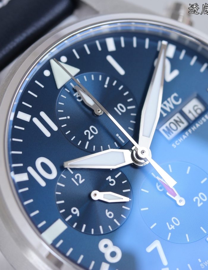 The IWC Pilot Chronograph blends aviation-inspired style with modern precision. Featuring a striking blue dial and robust stainless steel case, this watch is both elegant and durable. With a dark leather strap featuring white stitching, it pairs sophistication with comfort. Ideal for professionals and enthusiasts alike, this timepiece offers both functionality with its chronograph features and timeless appeal for everyday wear.