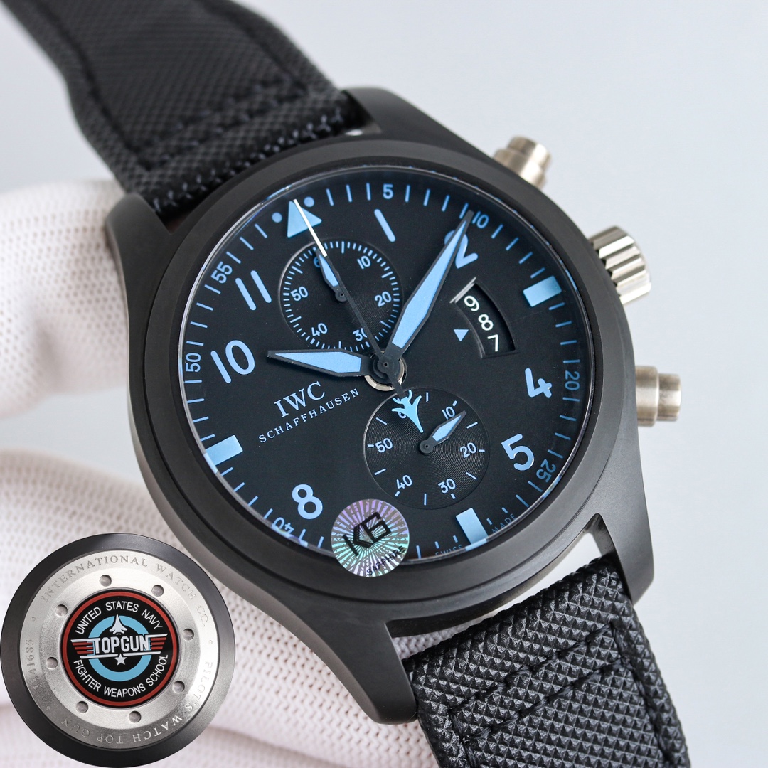 The IWC Pilot’s Chronograph Top Gun Edition combines precision and style with its robust design. Crafted with a black ceramic case and a durable fabric strap, this watch exudes a sleek, tactical aesthetic. The chronograph function and clear dial make it perfect for those who appreciate functionality and elegance. Ideal for professional settings or casual wear, this timepiece reflects IWC’s dedication to superior craftsmanship and innovation.
