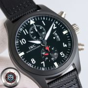 The IWC Pilot’s Chronograph Top Gun Edition combines precision and style with its robust design. Crafted with a black ceramic case and a durable fabric strap, this watch exudes a sleek, tactical aesthetic. The chronograph function and clear dial make it perfect for those who appreciate functionality and elegance. Ideal for professional settings or casual wear, this timepiece reflects IWC’s dedication to superior craftsmanship and innovation.