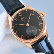 The IWC Schaffhausen watch combines timeless elegance with modern craftsmanship. Featuring a striking black dial and a luxurious rose gold case, this watch exudes sophistication. The sleek leather strap adds a touch of refinement, making it perfect for both formal occasions and everyday wear. Designed for those who appreciate precision and style, it embodies the heritage and innovation that IWC is renowned for.