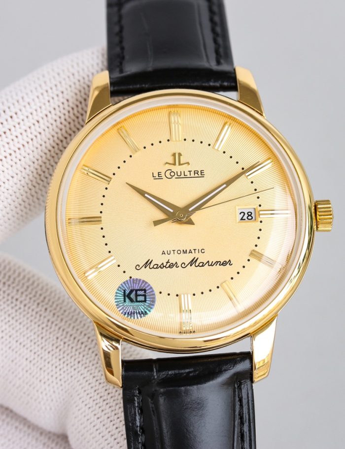 Experience timeless elegance with the Jaeger-LeCoultre Master Mariner Automatic. Featuring a refined gold-tone case and a classic white dial, this watch exudes sophistication. The sleek brown leather strap adds a touch of luxury, making it perfect for both formal occasions and everyday wear. Meticulously crafted, this watch combines style and craftsmanship in one stunning timepiece.