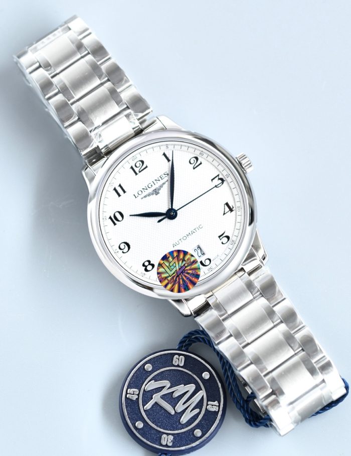 This Longines watch exudes timeless elegance with its stainless steel bracelet and case. The classic white dial features bold black numerals and a subtle date function, perfectly balanced for both casual and formal occasions. Crafted with precision and style, it is ideal for those who appreciate luxury and functionality in a timepiece.