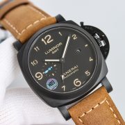The Panerai Luminor GMT combines classic elegance with robust functionality. Featuring a sleek black dial with luminous markers, it’s perfect for both formal and casual settings. The durable leather strap adds a touch of sophistication, while the GMT function ensures precision across time zones. Ideal for travelers and watch enthusiasts who appreciate style and reliability.