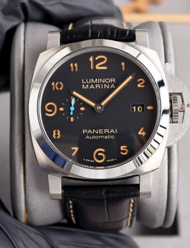 Experience timeless style with the Panerai Luminor GMT Automatic. This elegant timepiece features a robust black case and a sleek black dial with luminous markers for easy readability. Its refined brown leather strap adds a touch of sophistication, making it perfect for both formal and casual settings. Designed for the modern traveler, the watch includes a GMT function, offering added convenience across time zones.