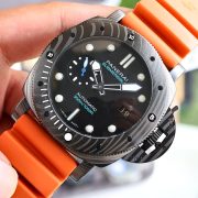 The Panerai Submersible combines rugged style with advanced functionality, featuring a robust stainless steel case and a striking orange rubber strap. Designed for adventure, it boasts a water resistance of up to 300 meters, making it perfect for divers and water sports enthusiasts. With luminous markers and a date display, this watch ensures visibility and practicality in any condition. Ideal for those seeking both durability and elegance in their timepiece.