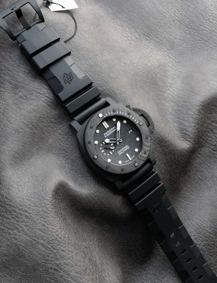The Panerai Submersible Marina Militare embodies rugged elegance with its striking black case and durable materials. Crafted from lightweight Carbotech™ for resilience, it features a robust rubber strap and luminous markers for superior visibility underwater. Perfect for diving enthusiasts, this timepiece offers both style and functionality, ensuring reliability in all aquatic adventures.