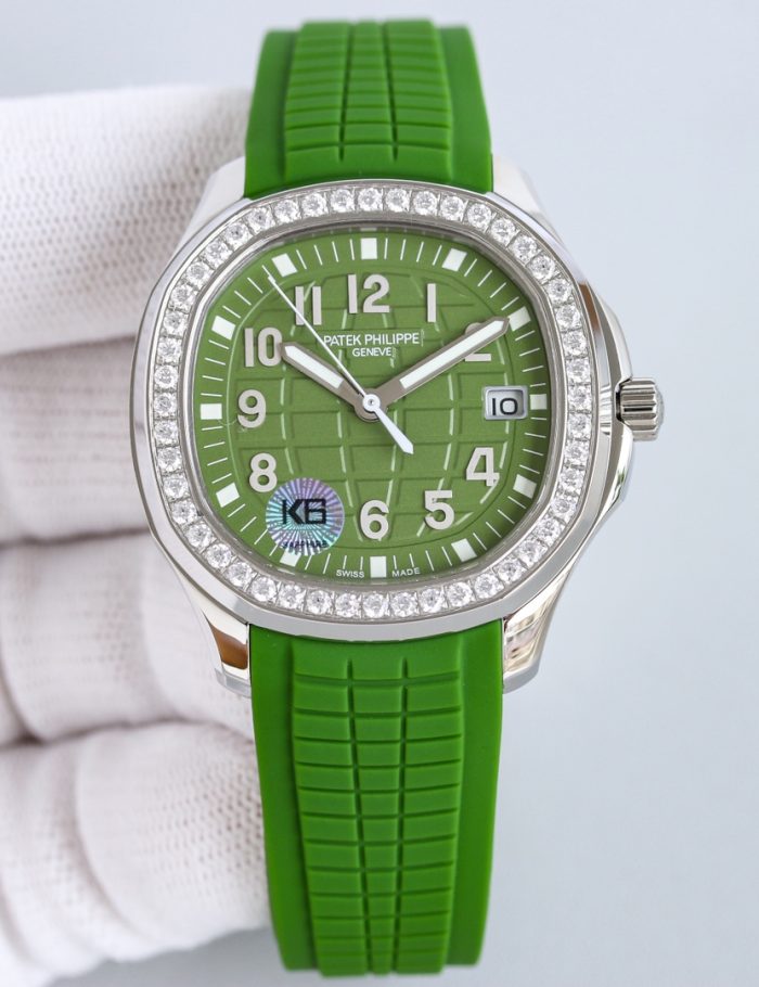The Patek Philippe Aquanaut combines sporty elegance with precision craftsmanship. Featuring a stunning rose gold case adorned with a diamond bezel, and a brown textured dial, this watch is both stylish and sophisticated. The durable rubber strap ensures comfort for everyday wear, making it ideal for active lifestyles. An exquisite choice for those who appreciate luxury and functionality.