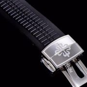 The Patek Philippe Aquanaut combines elegance with modern style, featuring a stainless steel case and a sleek black rubber strap. Its distinctive dial showcases bold numerals and a dual time zone function, perfect for the discerning traveler. Crafted with precision and luxury, this timepiece suits both professional and casual occasions.