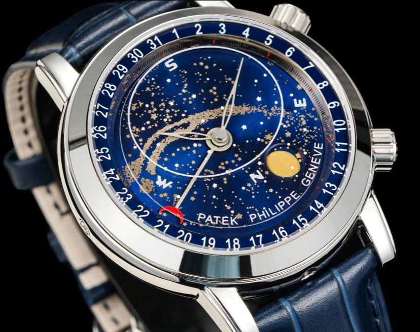The Patek Philippe Celestial is a masterful blend of artistry and craftsmanship, showcasing a dazzling starry sky on its deep blue dial. Encased in premium materials and paired with a luxurious leather strap, this watch is not only a style statement but also a sophisticated instrument for astronomical enthusiasts. Perfect for formal occasions, its celestial theme makes it a captivating accessory for those with a penchant for the cosmos.