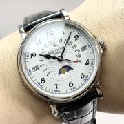 The Patek Philippe Complicated Calendar Watch exudes timeless elegance with its intricate dial and moon phase display. Crafted with a polished stainless steel case and a luxurious black leather strap, this timepiece is ideal for the sophisticated individual. Its detailed face offers both classic and contemporary style elements, making it perfect for formal occasions or as an everyday staple for the style-conscious.