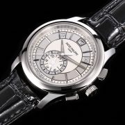 The Patek Philippe Complication Chronograph embodies timeless elegance with its intricate design and sophisticated silver dial. Crafted from premium materials, the watch features a polished case and a luxurious leather strap, offering both style and durability. Ideal for formal events and professional settings, this timepiece combines functionality with classic aesthetics, making it a quintessential accessory for discerning watch enthusiasts.