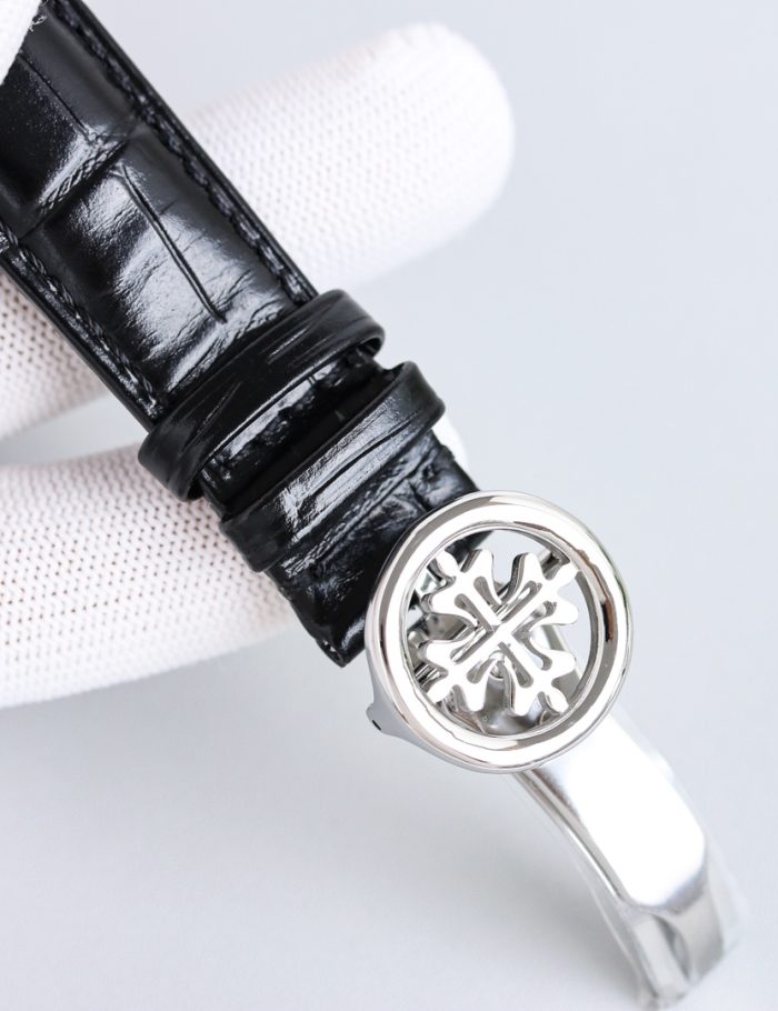 This exquisite Patek Philippe chronograph watch combines timeless elegance with expert craftsmanship. Featuring a sleek stainless steel case and a sophisticated black leather strap, it embodies luxury and precision. The clean white dial showcases detailed subdials for multifunctionality, making it perfect for both formal and professional settings. Ideal for discerning watch enthusiasts who appreciate style and reliability.
