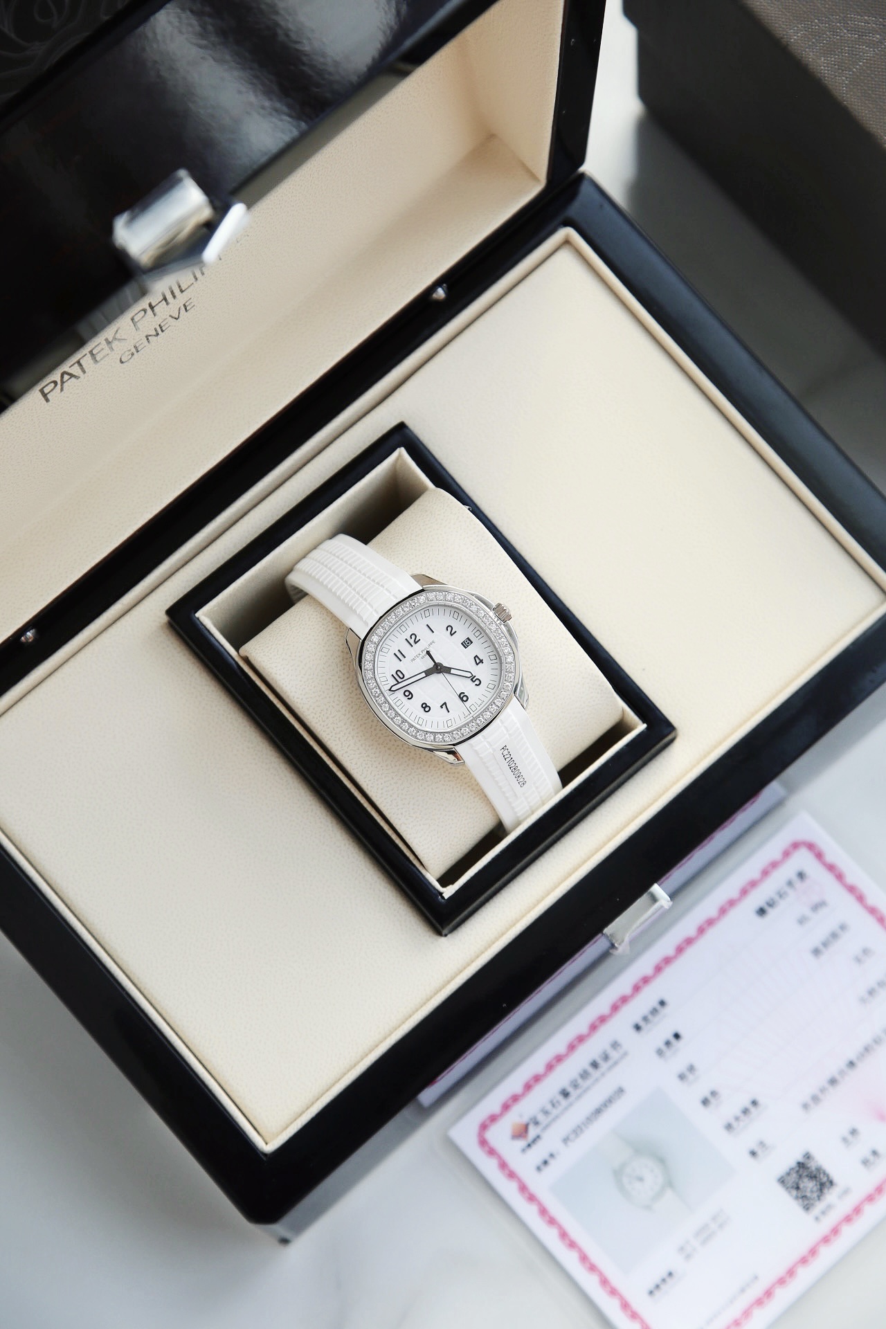 The Patek Philippe Luxury White Watch exudes elegance with its sleek white design and diamond-accented bezel. Crafted from high-quality materials, it features a durable strap and a classic dial with easy-to-read numerals. Perfect for both formal occasions and everyday wear, this watch embodies sophistication and timeless style.