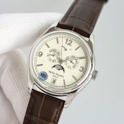 The Patek Philippe Men’s Complication Moon Phase Watch showcases timeless elegance with its stainless steel case and classic brown leather strap. Featuring a sophisticated moon phase display and perpetual calendar, this timepiece artfully combines functionality with style. Ideal for formal occasions or daily wear, it reflects Patek Philippe’s dedication to precision and luxury craftsmanship.