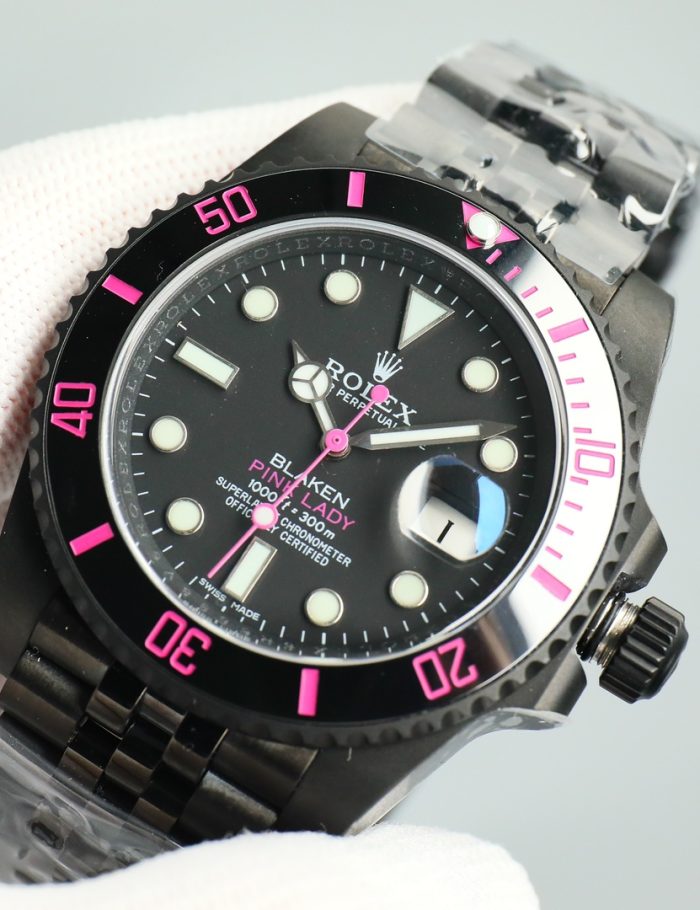 The Rolex Blaken Pink Lady exudes elegance with its striking combination of a black DLC-coated stainless steel case and vibrant pink accents. Designed for the confident individual, this watch is perfect for both formal occasions and casual outings. Its durable materials ensure long-lasting wear, while the precision chronometer offers unrivaled timekeeping accuracy.