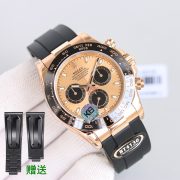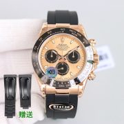 The Rolex Daytona Cosmograph features a stunning gold dial complemented by a sleek black ceramic bezel, embodying both elegance and sportiness. Crafted with high-grade materials, this watch is perfect for luxury enthusiasts and motorsport fans alike. Its robust Oysterflex bracelet ensures comfort and durability, making it ideal for both daily wear and special occasions.