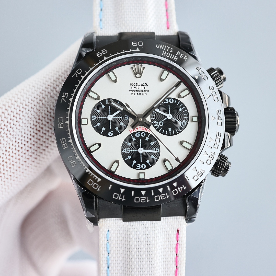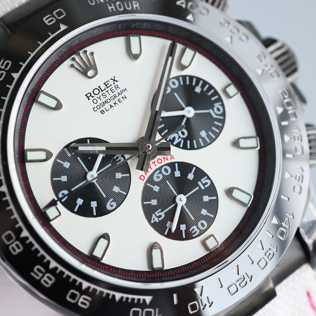 The Rolex Daytona Cosmograph Watch is a luxurious timepiece, featuring a stylish black ceramic bezel with tachymetric scale and a sleek, contrasting white dial. Crafted with precision, it includes three sub-dials for enhanced functionality. Perfect for racing enthusiasts and those who appreciate sophisticated design, this watch embodies both elegance and performance. Ideal for formal occasions or as a statement piece.