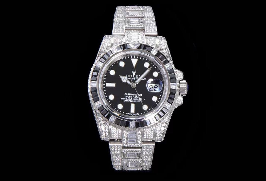 This Rolex Submariner exudes luxury with its diamond-studded bracelet and bezel, perfectly complementing the sleek black dial. Crafted from premium materials, it offers both style and durability. Ideal for those who seek elegance in every setting, this timepiece is suitable for both formal occasions and high-end adventures.