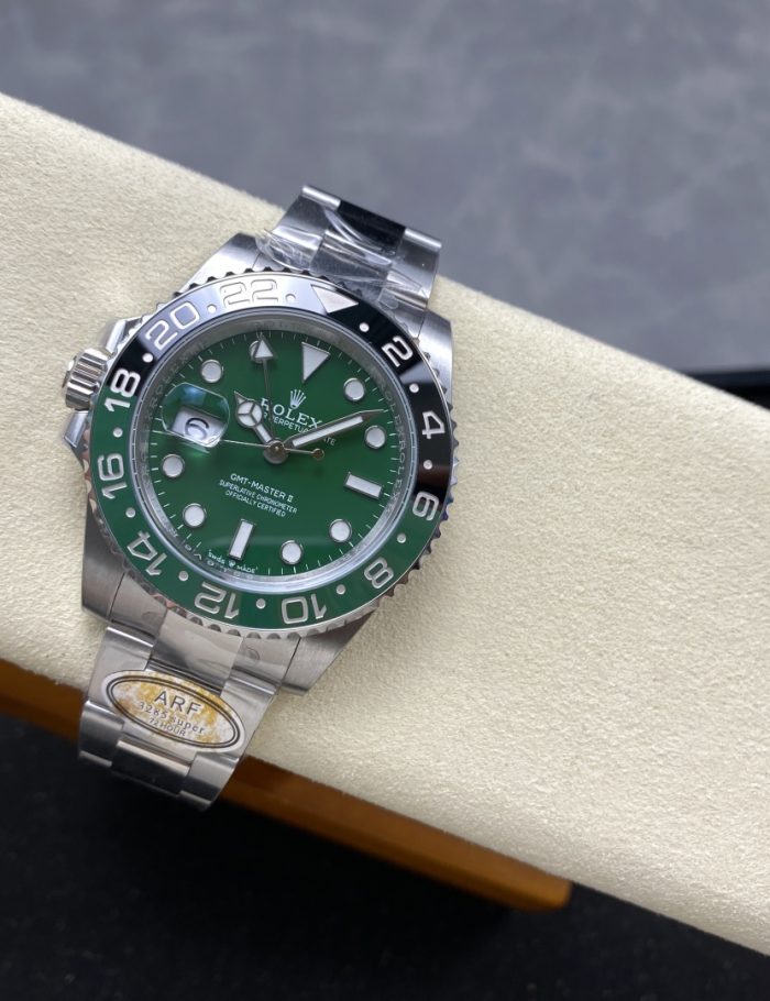 The Rolex GMT-Master II features a stunning green dial with a stainless steel case and bracelet, embodying both luxury and durability. Its iconic ceramic bezel and dual time zone function make it ideal for frequent travelers. This timepiece is a perfect blend of elegance and functionality, whether you’re navigating a busy airport or attending a formal event.